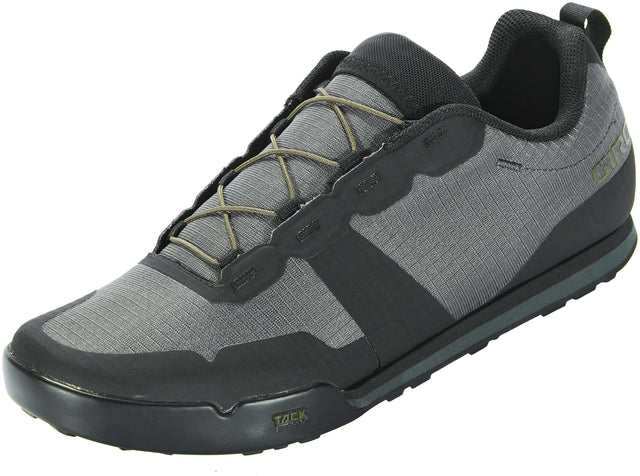 Der Tracker Fastlace erfüllt den Wunsch nach einem radsport- bzw. e-Bike-freundlichen Flat-Pedal-Schuh, der leicht, bequem und atmungsaktiv genug für ganztägige Abenteuer ist und dabei aber nicht auf Grip oder Leistung verzichtet. Aufgebaut auf Giros neuem optimierten System, welches den Fuß näher am Pedal platziert und ein flaches Profil für optimalen Pedalkontakt aufweist, steht der Tracker in direkter Linie zu anderen aggressiveren Flat-Pedal-Modellen. Die Tack Gummi-Außensohle greift in die Flat-Pedal-Pins und eine zweischichtige EVA-Zwischensohle bietet Komfort auch abseits des Bikes. Das Schnellschnürungssystem ermöglicht ein schnelles An- und Ausziehen und eine einfache Anpassung an den Fuß.