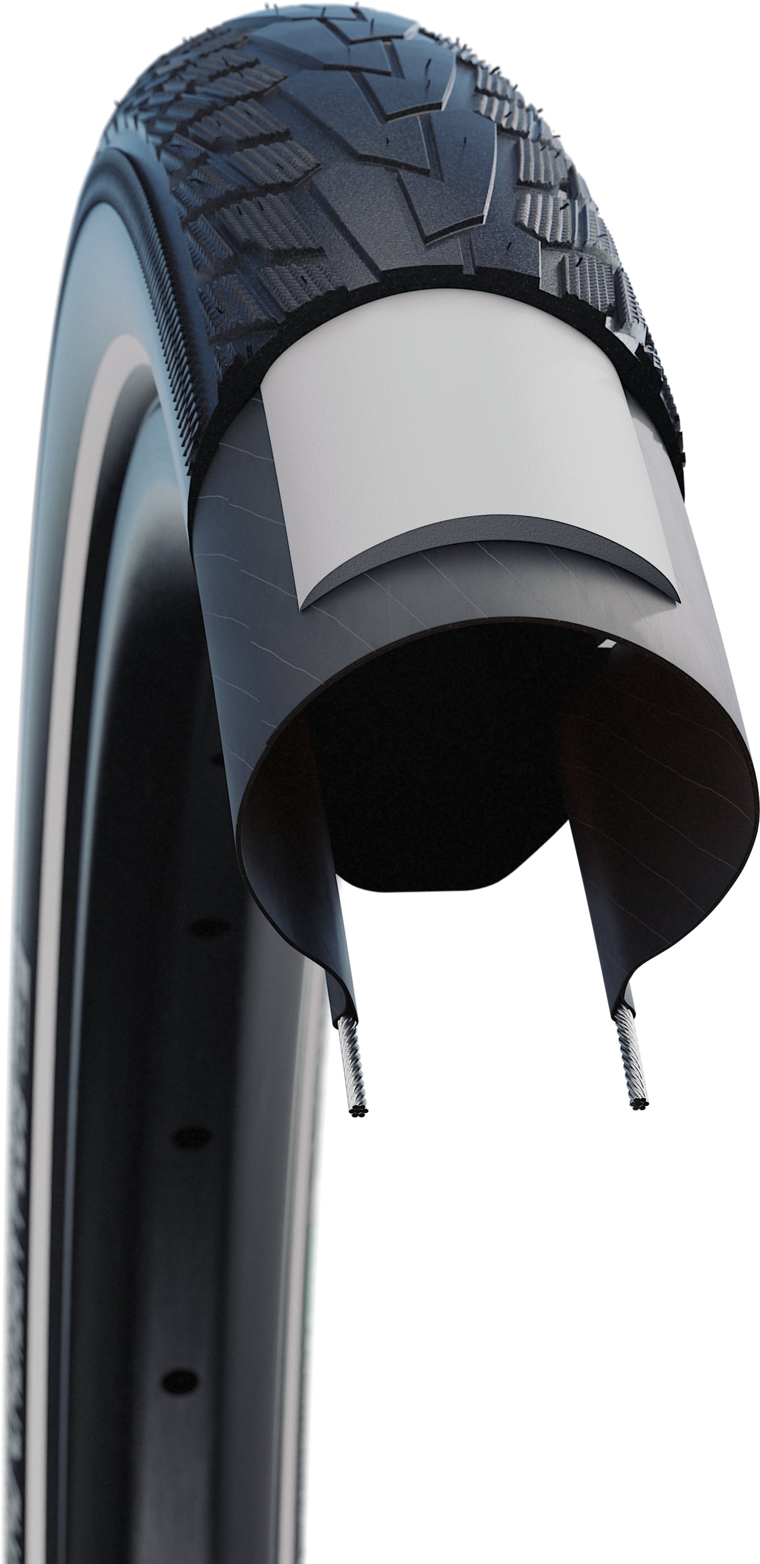 Das Gerüst aller Active Line Reifen ist die hochwertige 50 EPI-Karkasse. Grobe 20 oder 24 EPI-Karkassen gibt es bei Schwalbe nicht mehr. Zusätzlich sorgt der K-Guard bei allen Active Line Reifen für einen effektiven Pannenschutz.
